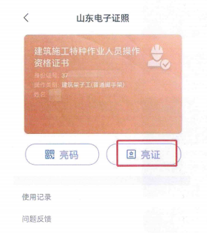 15.身份驗(yàn)證成功,顯示證書(shū)信息,點(diǎn)擊“亮證”。(若該類型證書(shū)存在多個(gè)證書(shū),可以左右滑動(dòng)切換)